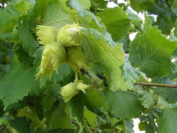 El fruto es la avellana, que se produce en grupos de 1 a 5, cada una contenida en un pequeño y hojoso involucro que encierra alrededor de las 3/4 partes de la nuez. La maduración tarda de 7 a 8 meses y entonces el involucro se abre liberando la avellana.