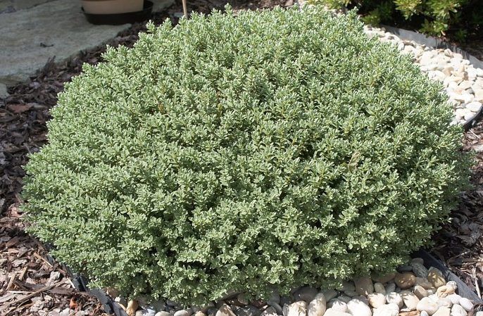 Planta arbustiva perenne de pequeñas dimensiones, los ejemplares adultos cultivados directamente en el suelo del jardin pueden llegar a medir de treinta a cincuenta centímetros de altura y de veinte a sesenta centímetros de diámetro.